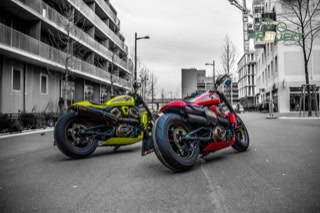 Du bist auf der Suche nach einem wirklich einzigartigen Motorrad - dann bist du hier genau richtig. Bei unseren Sportster S ist nicht nur das Design unverkennbar, sondern auch der Sound und die Leistung. Zwei Jungfahrzeuge, welche genau an den richtigen Stellen modifiziert wurden, um aus sehr guten Harleys zwei perfekte Einzelstücke zu schaffen. Neben einer speziellen „House of Kolor-Sonderlackierung, einem Klappenauspuff und seitlichem Kennzeichenhalter von Cult-Werk finden sich überall kleine Details (Scheinwerfermaske Cult-Werk, 3in1 LED Rück-/Bremslicht Kellermann Jetstream, gefräste Lenkerendensiegel von Wunderkind-Custom, diverse Harley-Davidson „Wild-One“ Anbauteile, uvm.) zur Perfektion. Mit der Showa Upside-Down-Gabel fährt sich auch der fette 160er-Vorderreifen perfekt. Natürlich ist Alles komplett Typisiert! Das Inserat für die Bikes findest du HIER.